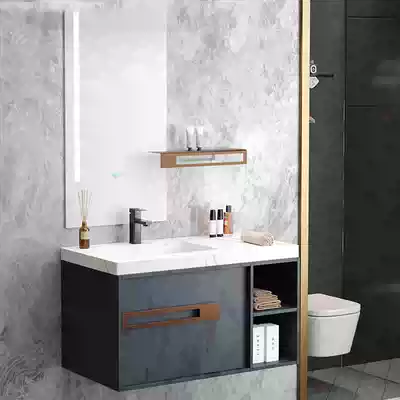 Drain room modern simple wash basin wash basin custom light luxury Rock board solid wood Bath Cabinet combination Bath Mirror