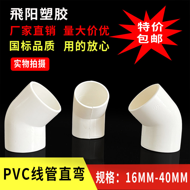 PVC Wire Pipe Elbow 45 Degrees National Scale Thickening Electrician Pipe Fitting Joint Flame Retardant 16 16 20 20 32 32 40