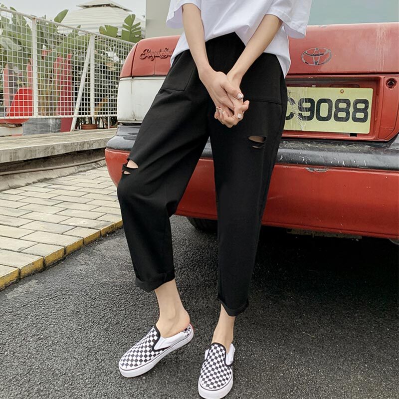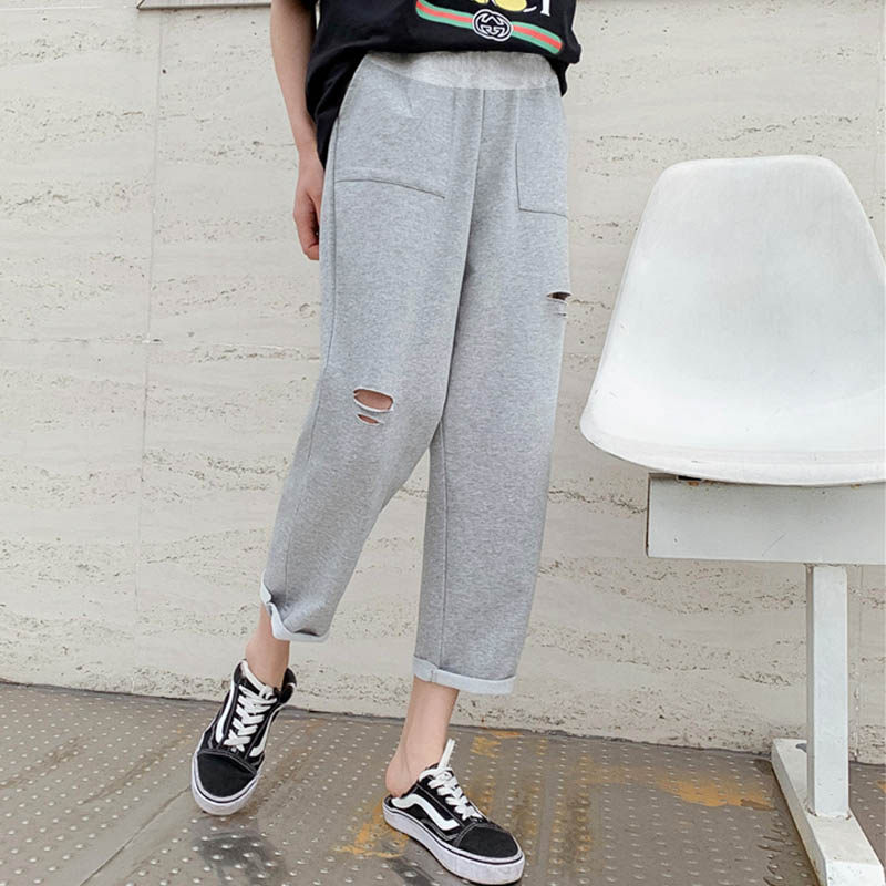 Pregnant women's spring and autumn straight tube pants wearing holes in autumn and winter little man 8-9 points belly tide