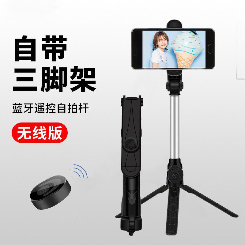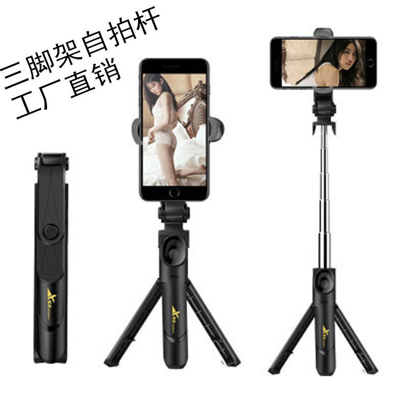 Tripod self-slapping bar triangular integrated remote stainless steel telescopic Bluetooth live mobile phone rack selfie-bar
