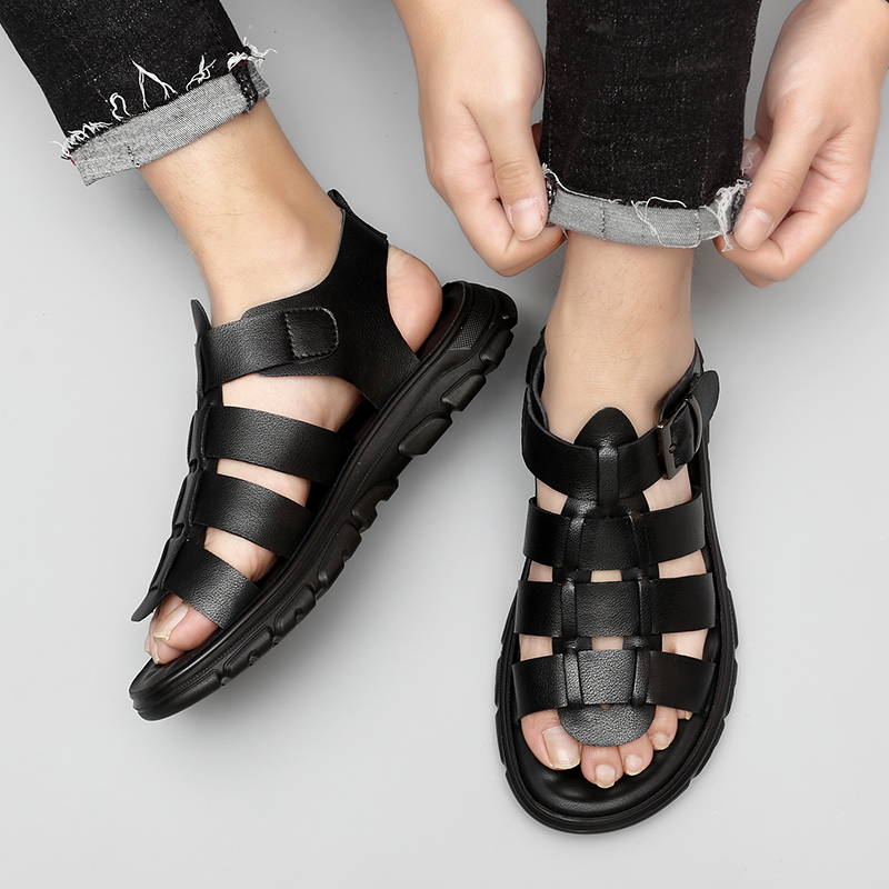Tide Cards Men's Roman Sandals Summer Breathable Genuine Leather Youth Casual Open-toe Beach Shoes Outwear Cow Leather Sandal Sandals Shoes