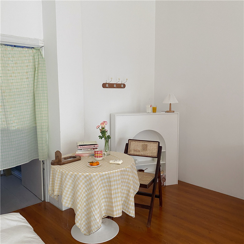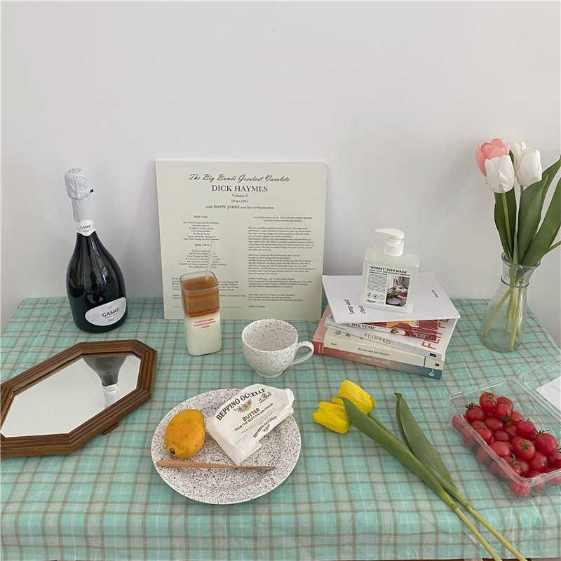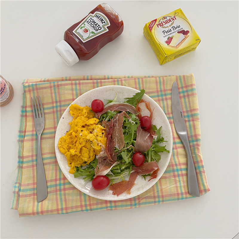 Po-homemade French retro ins romantic color rainbow plaid tablecloth mat cotton small fresh background cloth