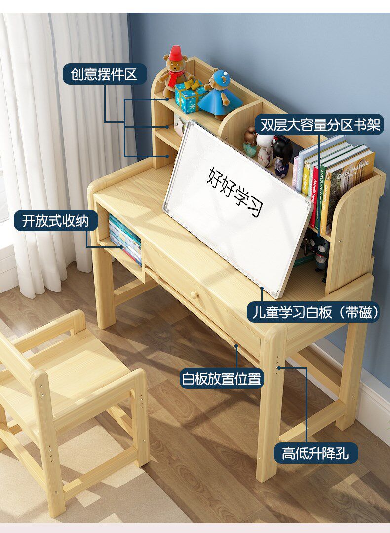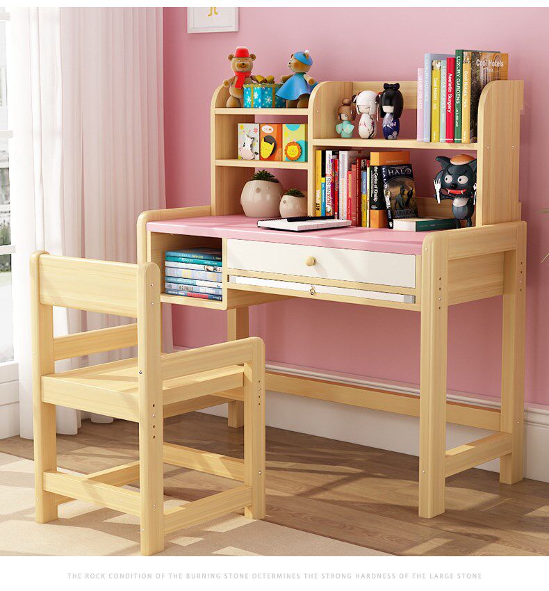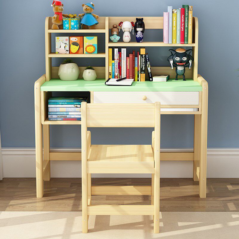 Solid wood children's study desk desk bookcase combination primary school desk and chair home writing desk set