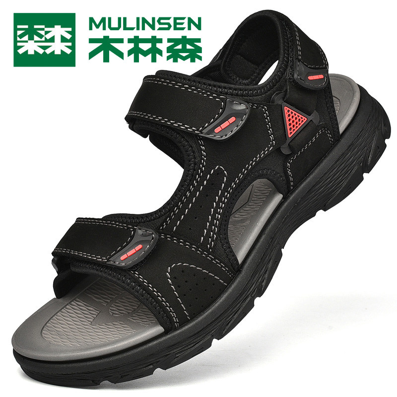 Wood Linson Sandals Sandals Men's Summer Real Leather Breathable Sports Beach Shoes Non-slip Deodorant Quick Dry Covered Water Outdoor Casual Shoes