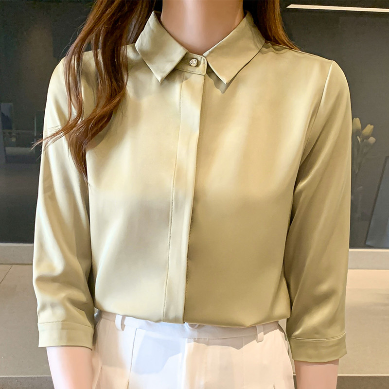 Free ironing three-point sleeve professional white shirt women's summer anti-wrinkle satin shirt high-end fashion temperament formal top