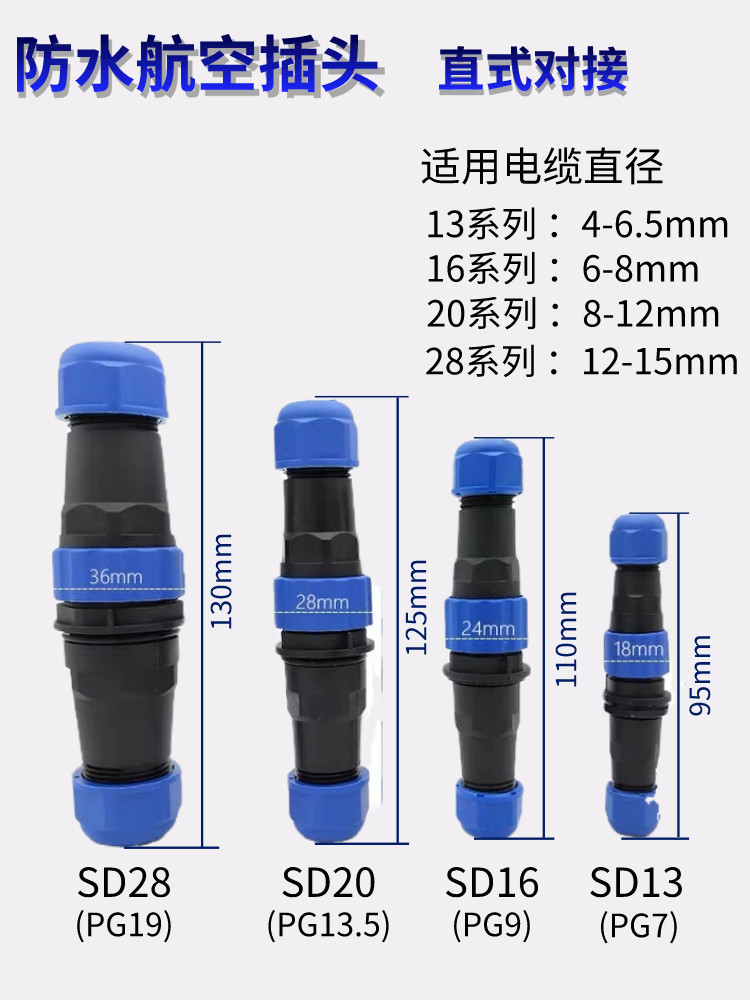 Waterproof aviation plug IP68SD13-16-20-28 waterproof joint connector male and female docking model complete