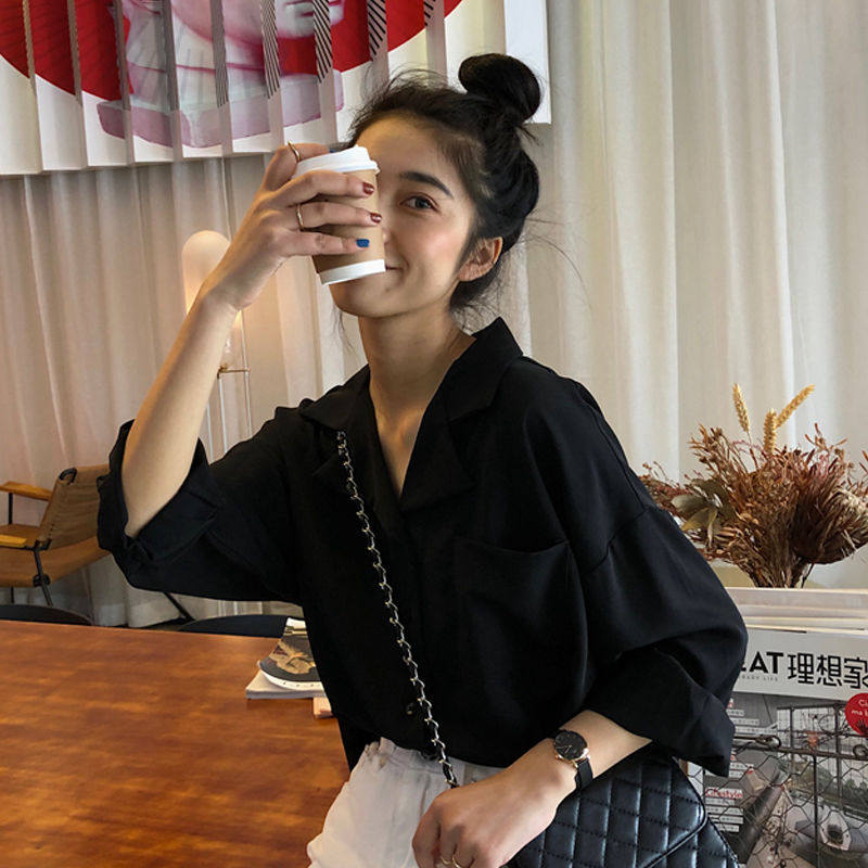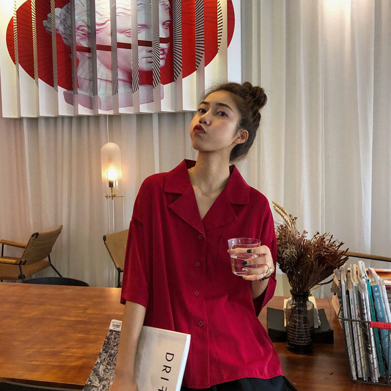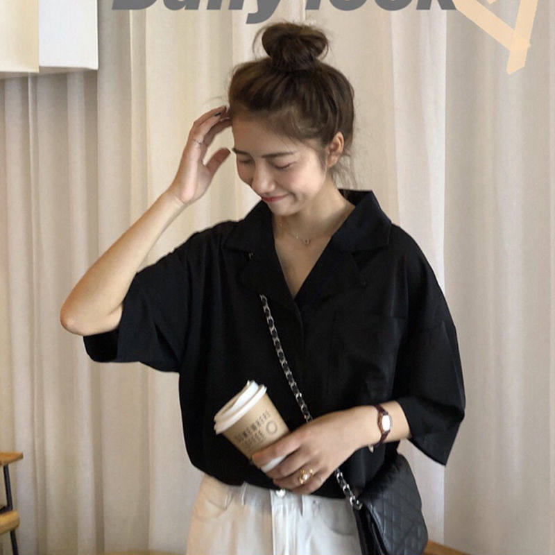 Short-sleeved shirt women's Korean version loose and thin students 2021 summer new retro Hong Kong style design niche top