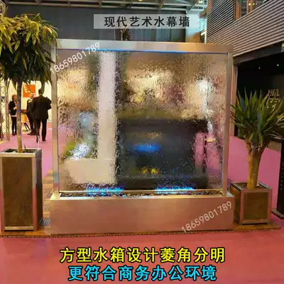 Large screen indoor water curtain wall modern waterscape office entry Logo wall light luxury ornaments water fountain