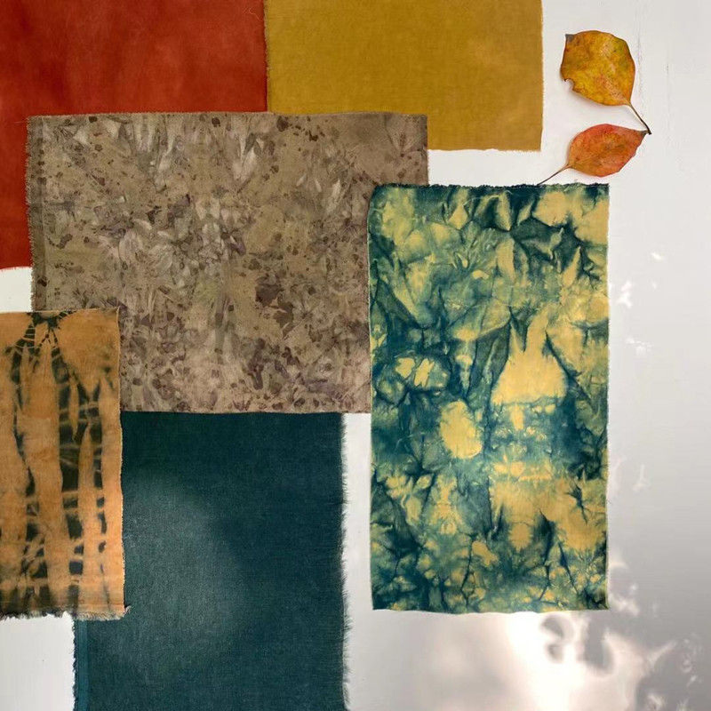 Unfinished plant dyed tie-dyed color DIY fabric cotton linen silk hand-made patchwork hand account decoration