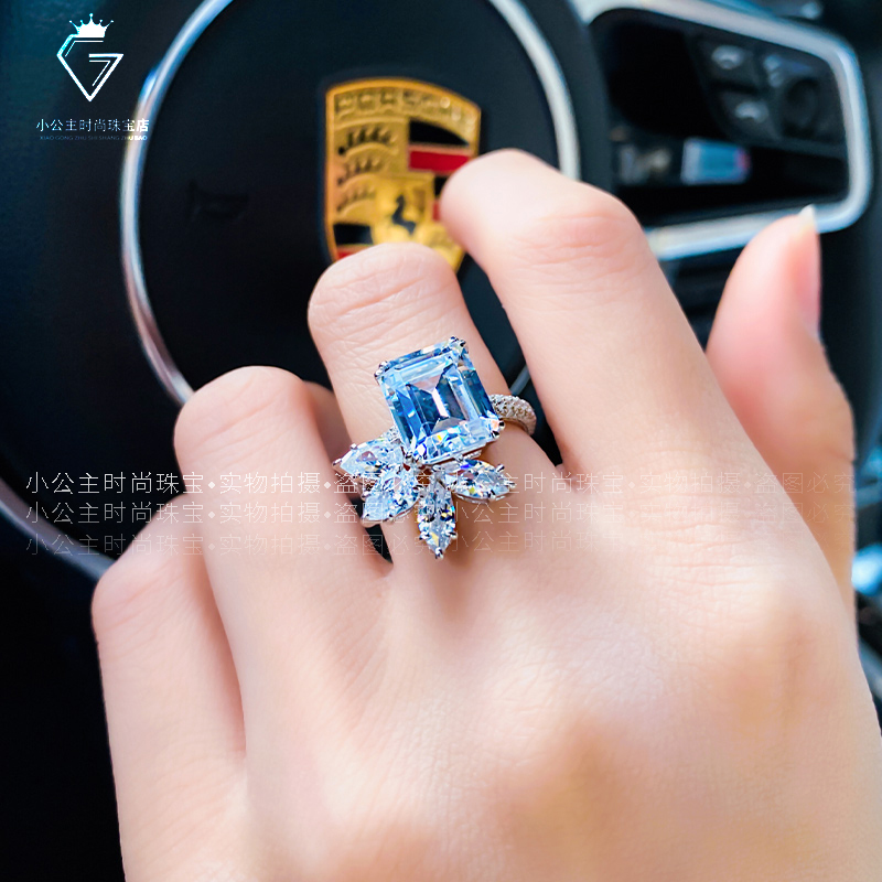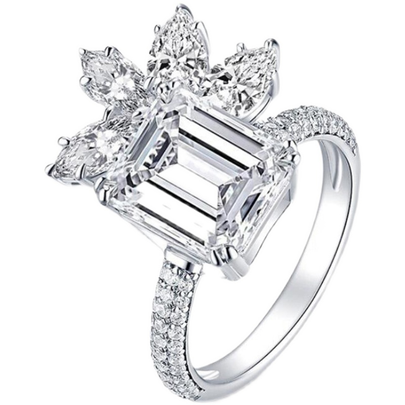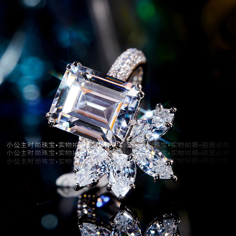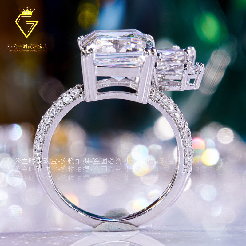 18K platinum ring 4 paws princess square diamond ring female mosanite white gold wedding finger female suitor wedding wedding gift drill ring