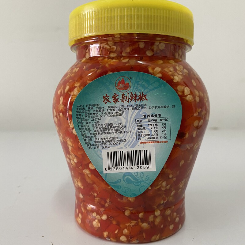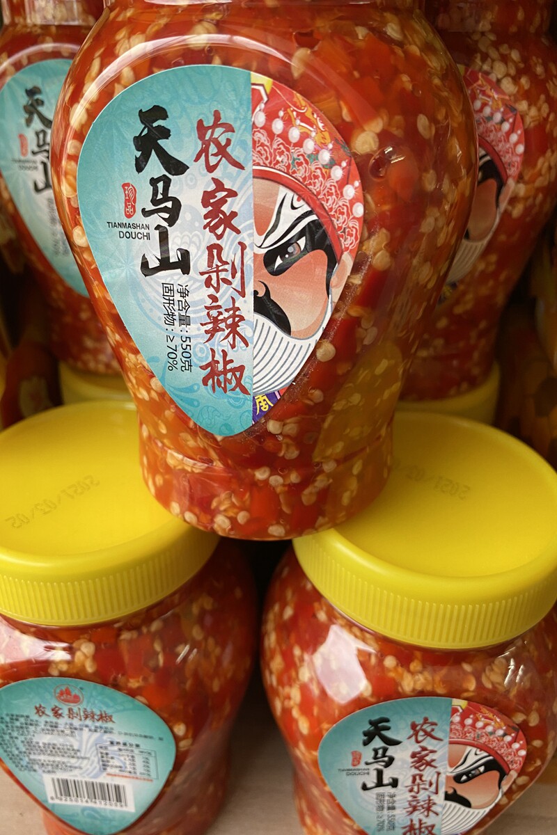 Hunan chopped chilli Liuyang native Tianma Mountain farmhouse chopped chili 550g Next meal Rice Vegetable Plastic Bottle Chili Sauce