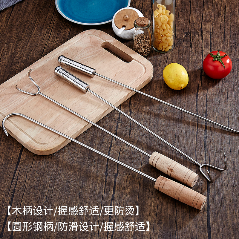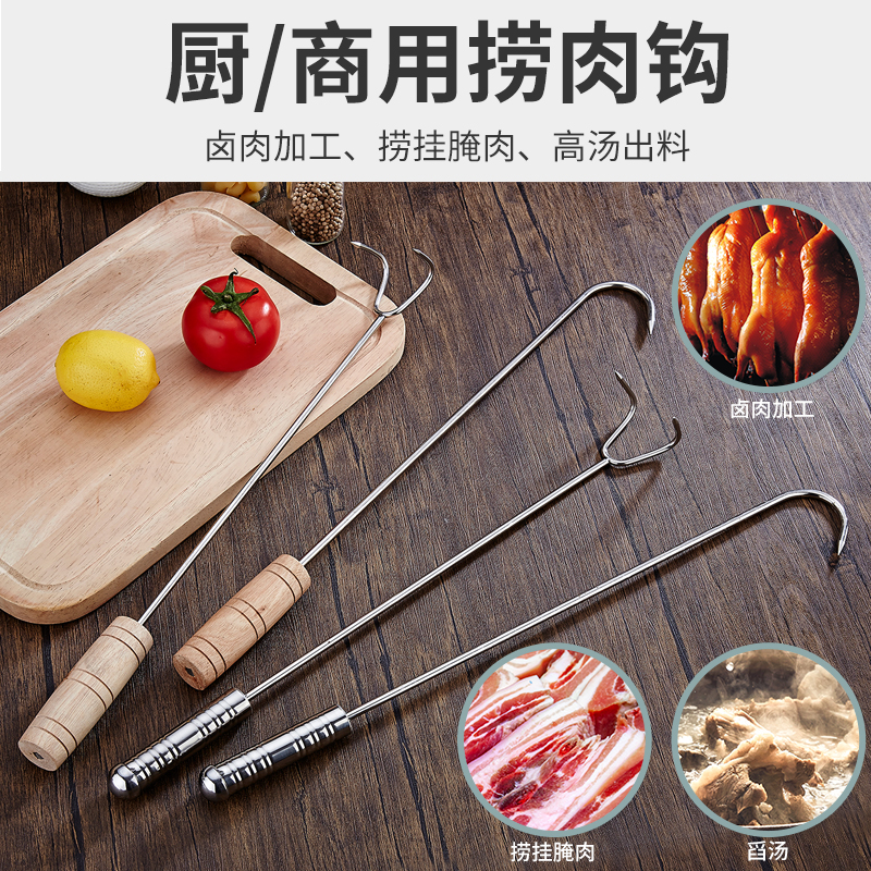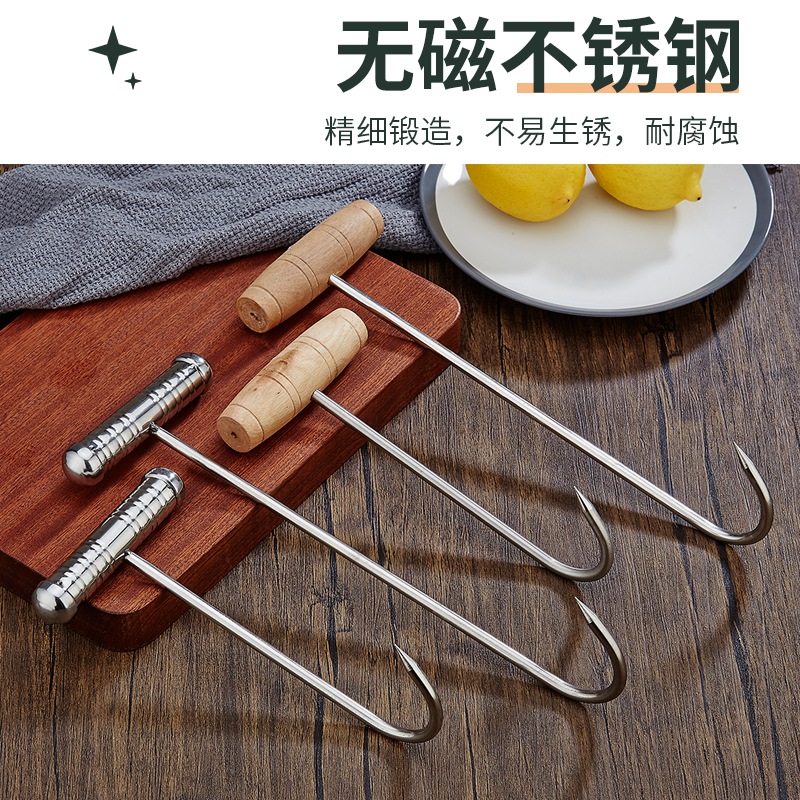 Stainless steel wood handle meat hook Meat Hook Meat Grab meat Roast Hook Pork Hook Pork Hook TASTE HOOK LARGE COARSE HOOK FOR MEAT DOUBLE HOOK