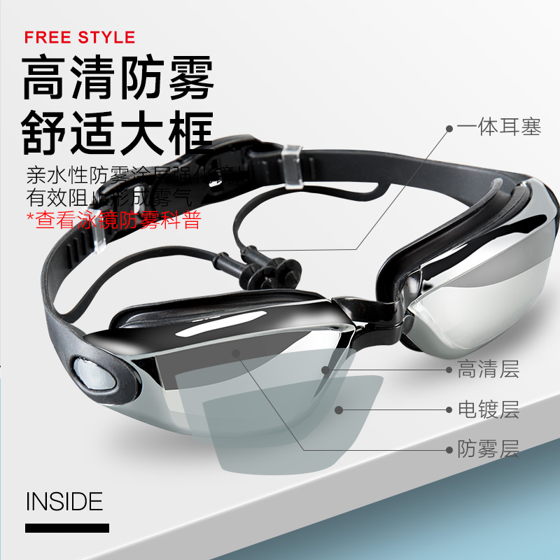 (4205 black and silver) (2 5L swimming bag) (4205 black and silver) (transparent swimming mirror) (2 5L swimming pack) five pieces (4205 black and blue)