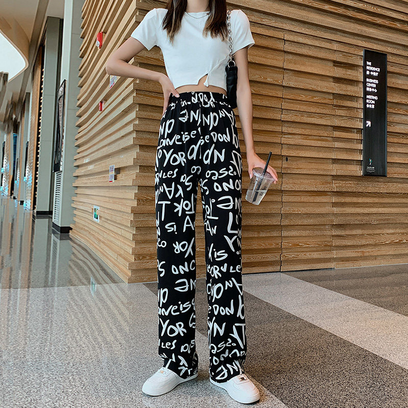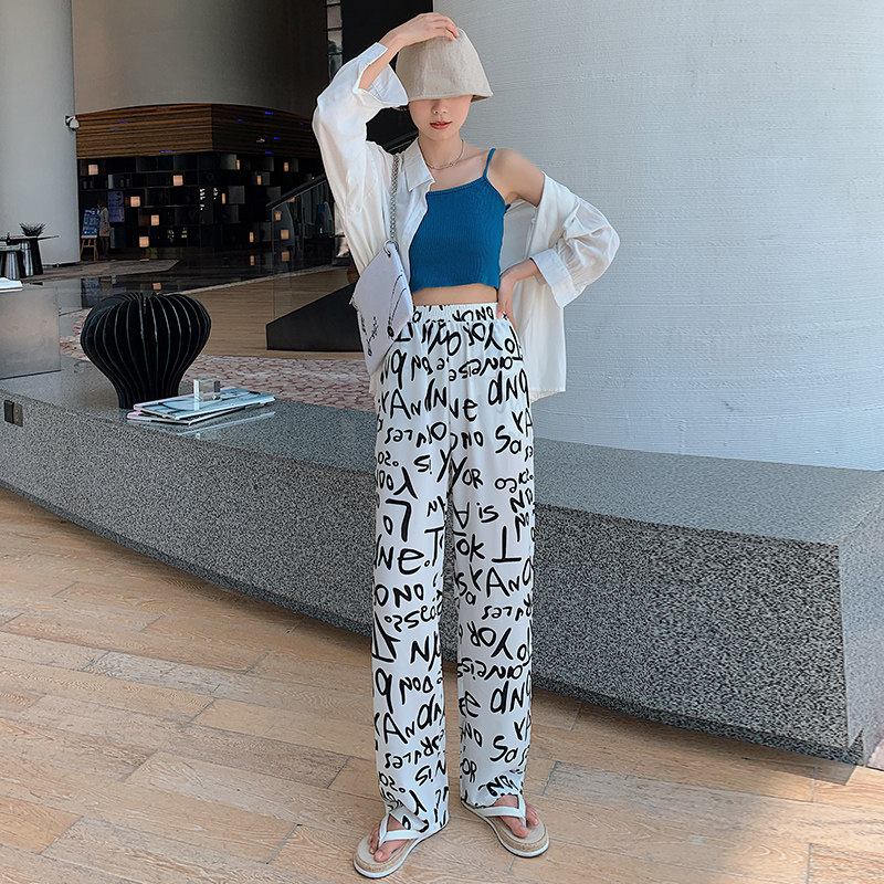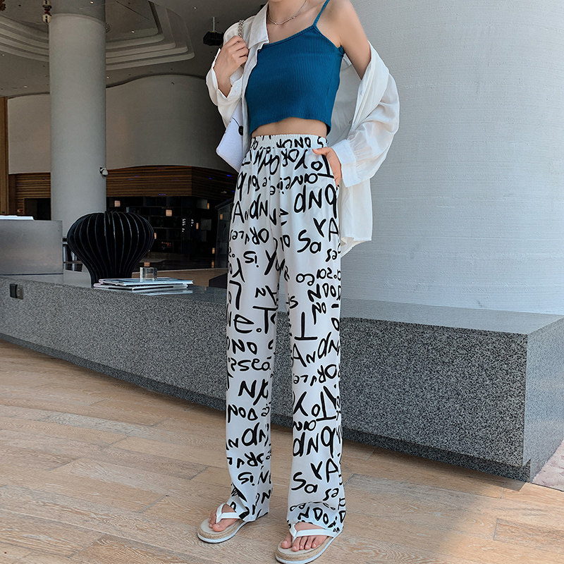 Clear Cabin Printed Snowspun Broadlegged Pants Woman Spring Summer Thin height waist pituality loose straight cylinder white casual drag underpants