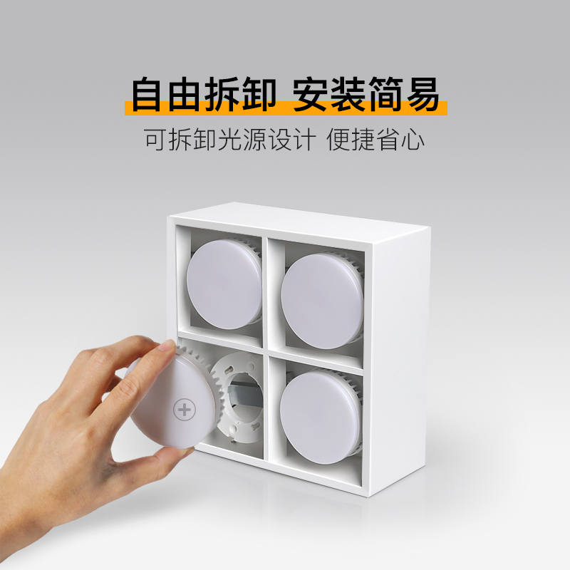 Led Ming Bottling lamp quadrupled spotlight Extreme minimalist Living room No main lamp Lighting Living room square Double head bucket liner lamp grille