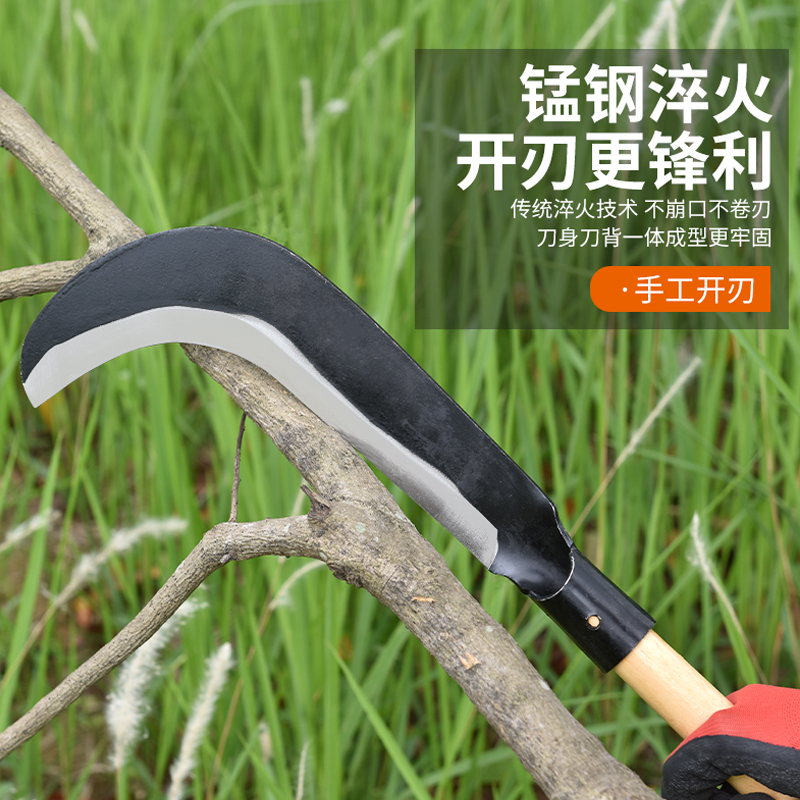 Stainless steel sickle mower outdoor agricultural greening weeding cheap knife cutting rice cutting wheat wooden handle long and short handle sickle