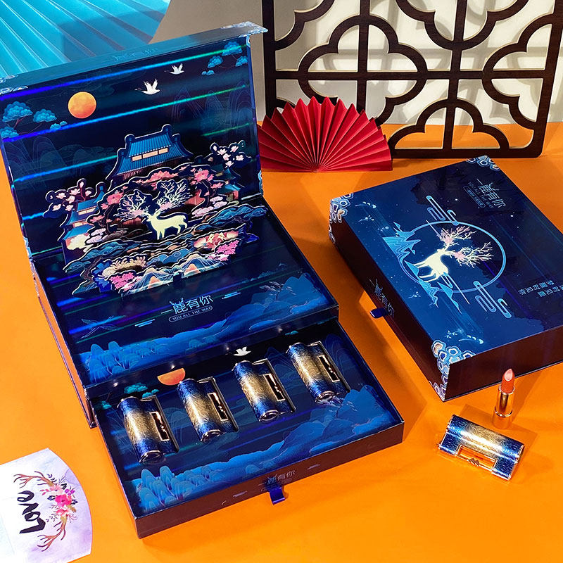 Li Jiaqi Concentric Love Lock Carved Lipstick Set Big Brand Guofeng Cosmetics Gift Box 520 Valentine's Day