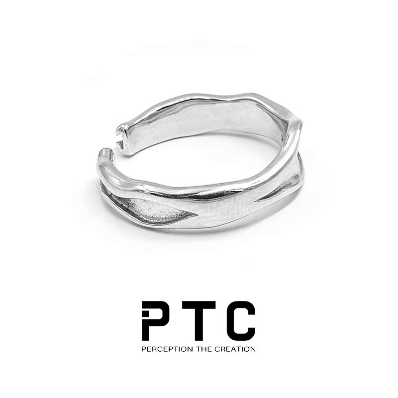 PTC superior light-sensitive face minimalist wavy rugged irregular S925 pure silver opening ring small crowddesign male and female