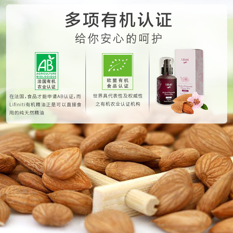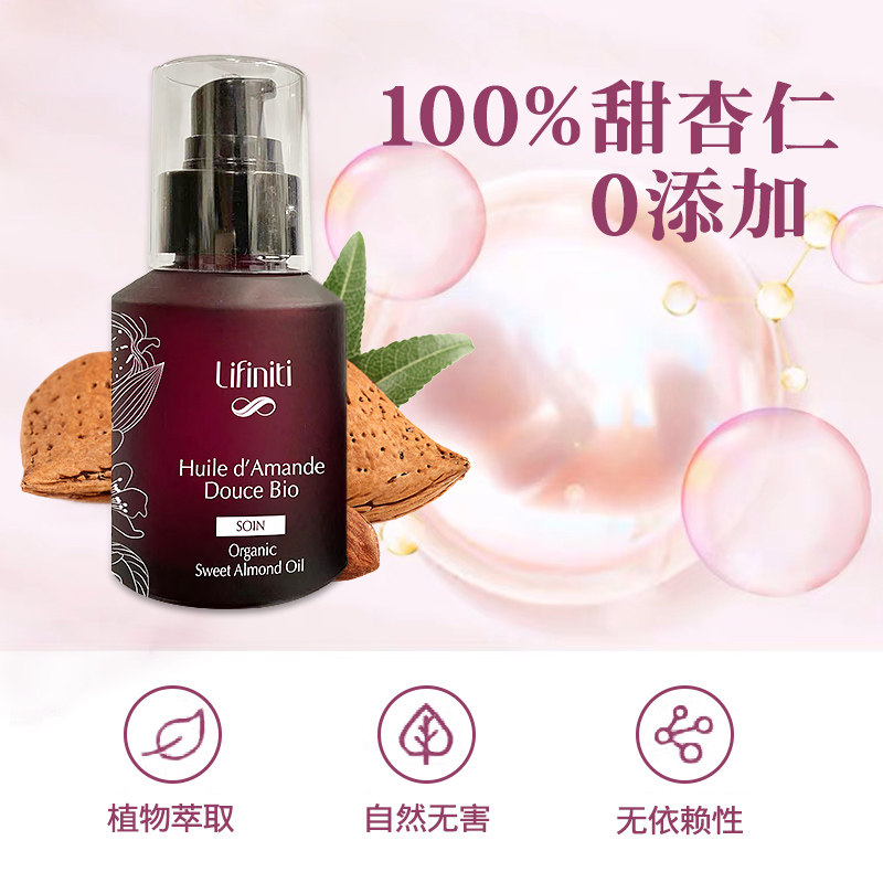 Organic sweet almond oil Lifiniti to gentle care natural food grade baby newborn baby caressing massage