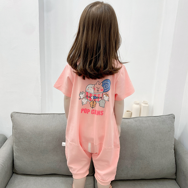 Summer Baby Boy Short Sleeve Sleeping Bag Thin split-leg anti-kick by male and female baby air-conditioned room Home Sleeping Clothing Pure Cotton