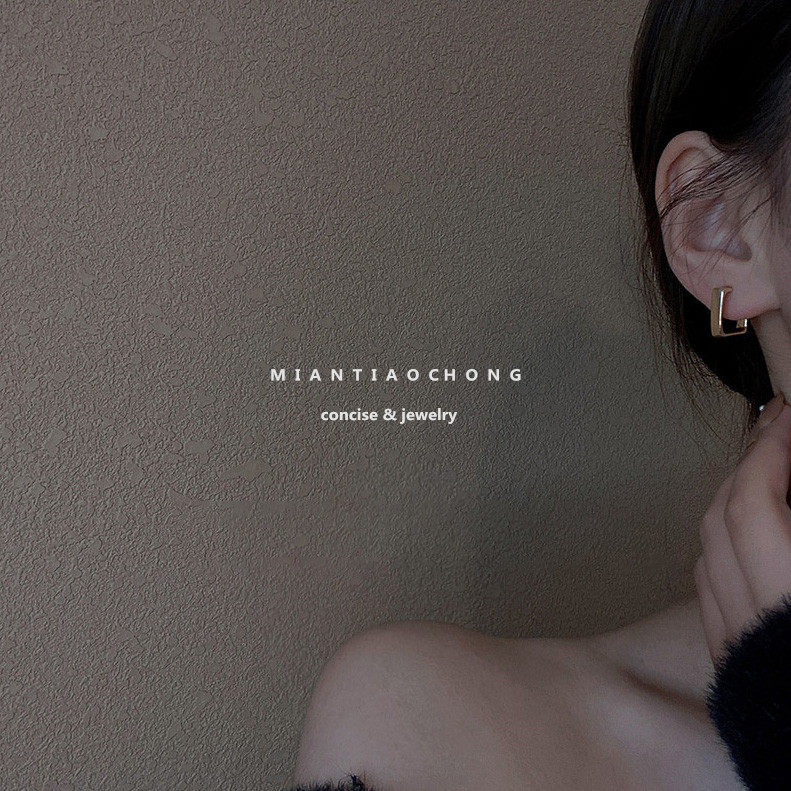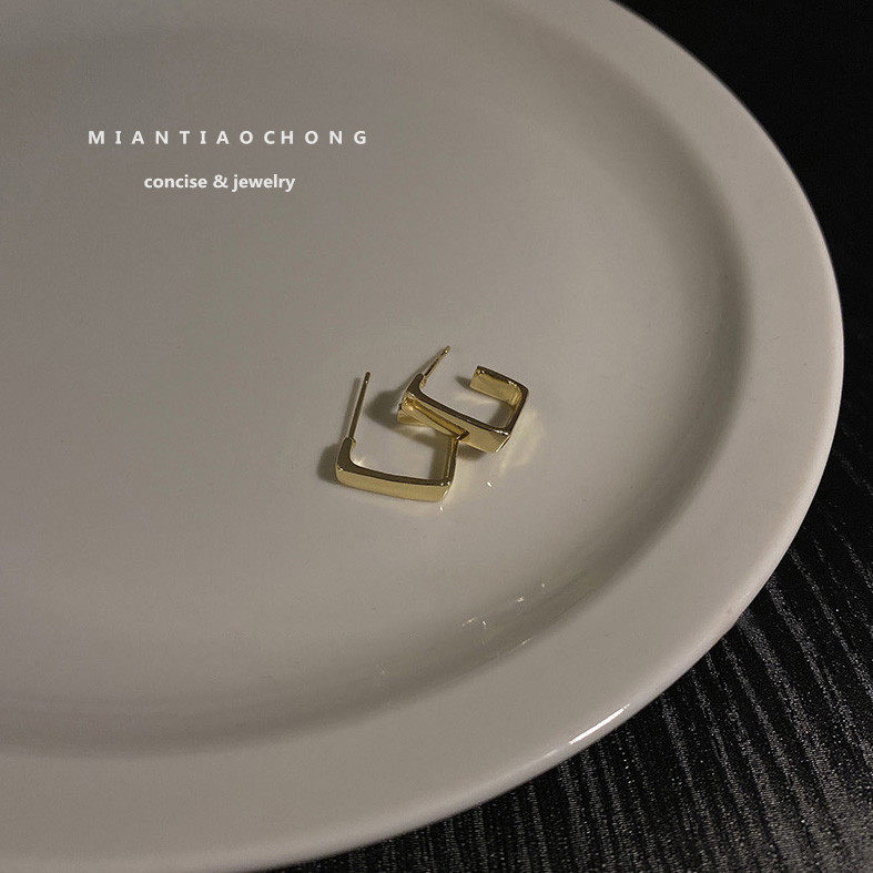 ins Japan-ROK minimalist European and American advanced senses small square 100 lap metal commuter earring ear-pin mosquito coil ear clip