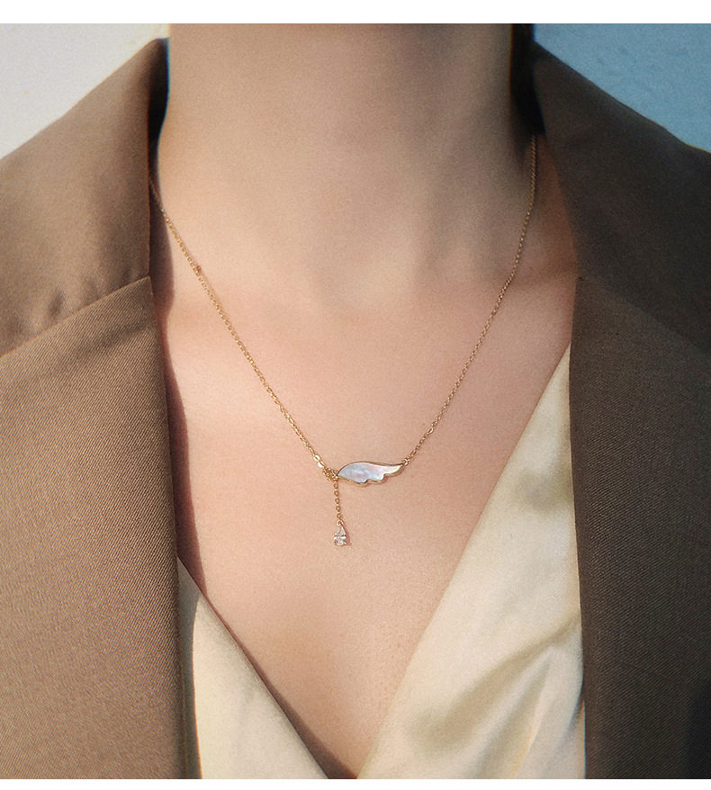 RVY 2023 New Shell Small Wing Necklace Necklace Stream Tide of Necklaid Clock Chain