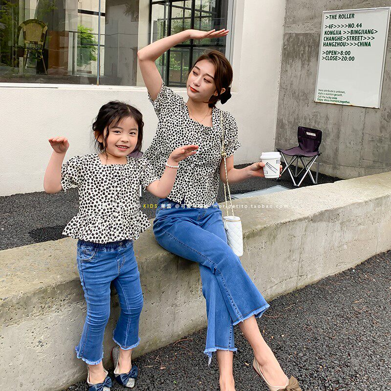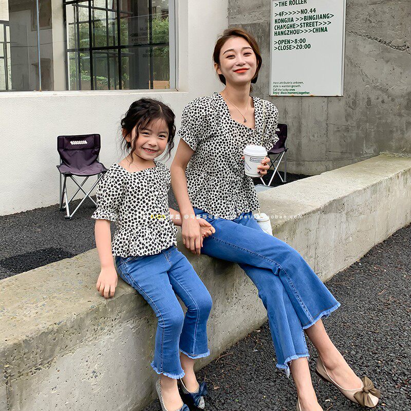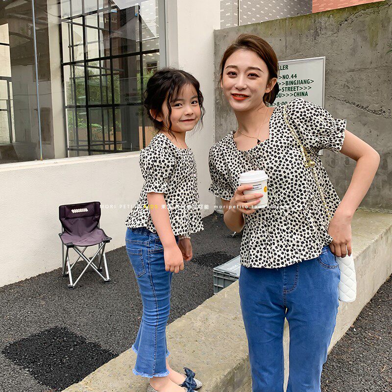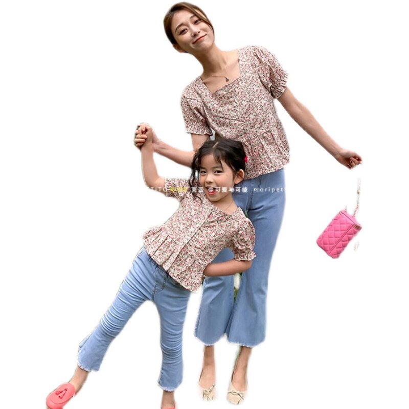 Niche fried street parent-child dress mother and daughter summer floral mother and daughter dress lace super tassel short foreign top 2021