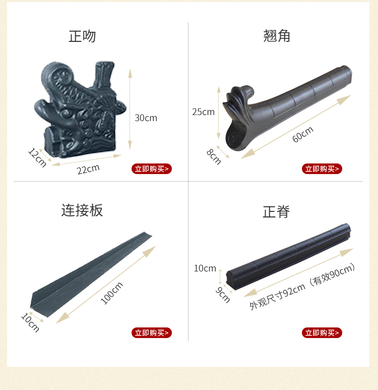 Factory direct selling resin antique tiles plastic Chinese courtyard wall decoration cornices are kissing one roof tile