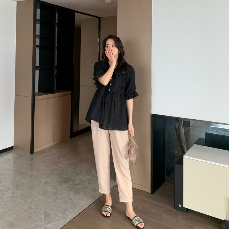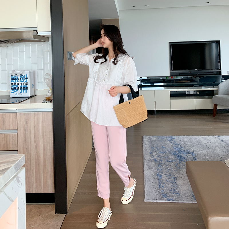 ZMA Gestational Woman Dress (rum micro-intoxicated) new pregnant woman suit pure color doll blouse blouse button for western pants summer