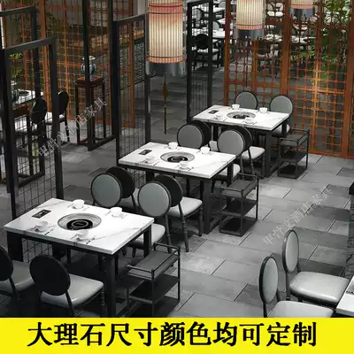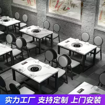 Hot pot table induction cooker integrated table one person one pot marble with single small hot pot table barbecue table Commercial