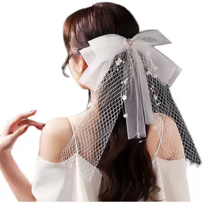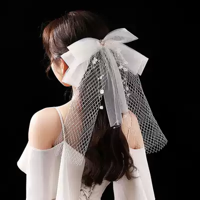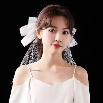 Bridal wedding dress modeling small veil certificate registration Photo studio with makeup Short bow wedding cute headdress