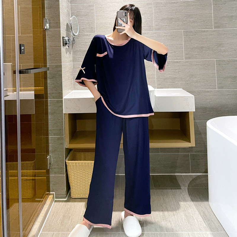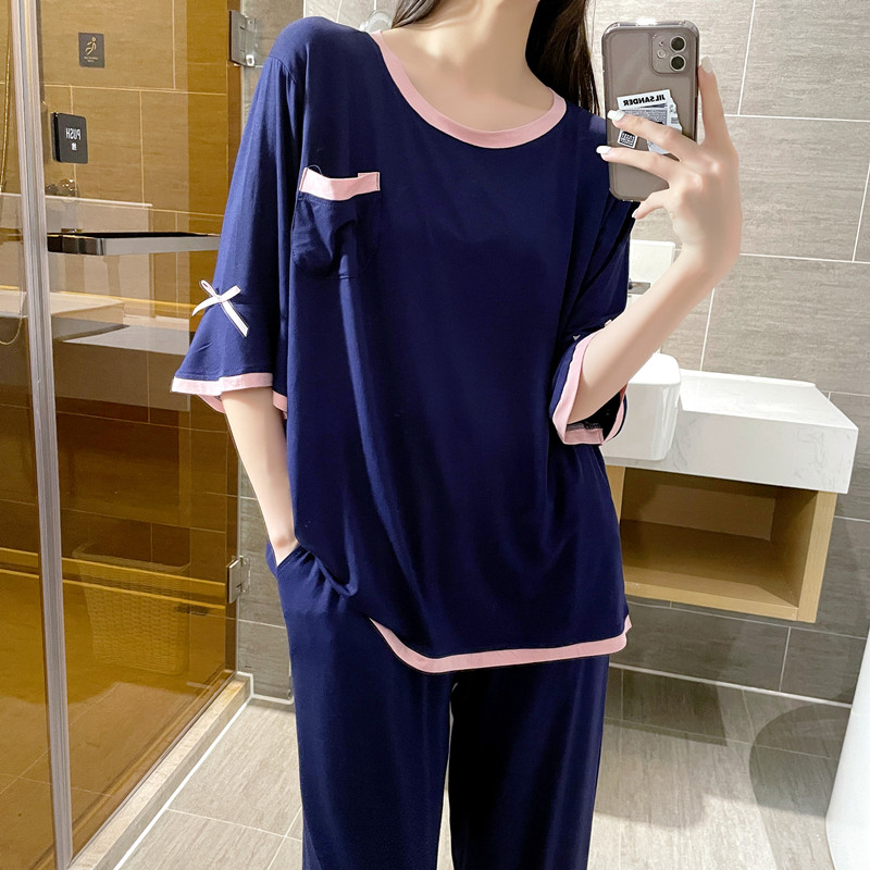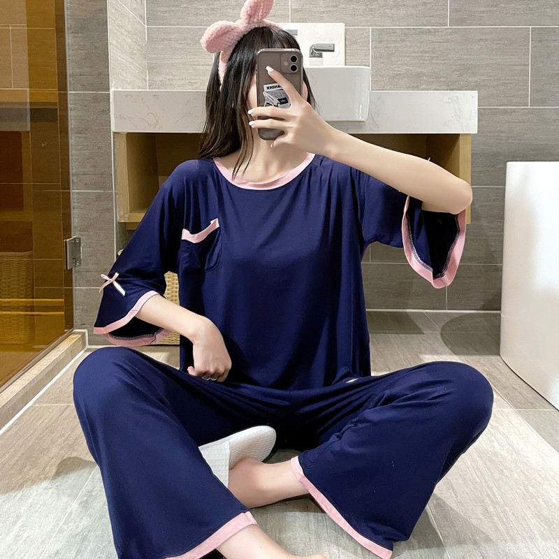 Simple modal pajamas women's summer short-sleeved round neck loose plus size fat MM200 catties thin home service suit