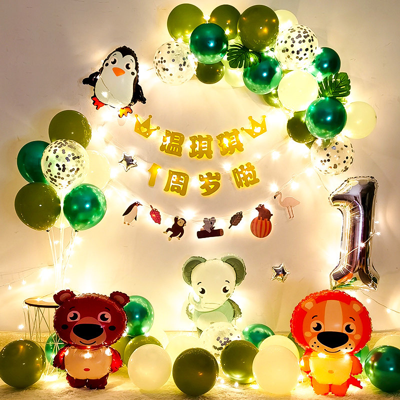 Boy baby 1st birthday layout decoration scene net red animal balloon hundred days banquet poster background wall