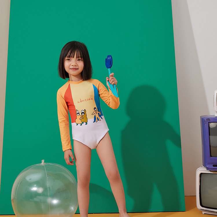 Love Dole 2021 nian new children's swimwear zhong xiao tong female Siamese cute baby long sleeve spa girls swimsuit