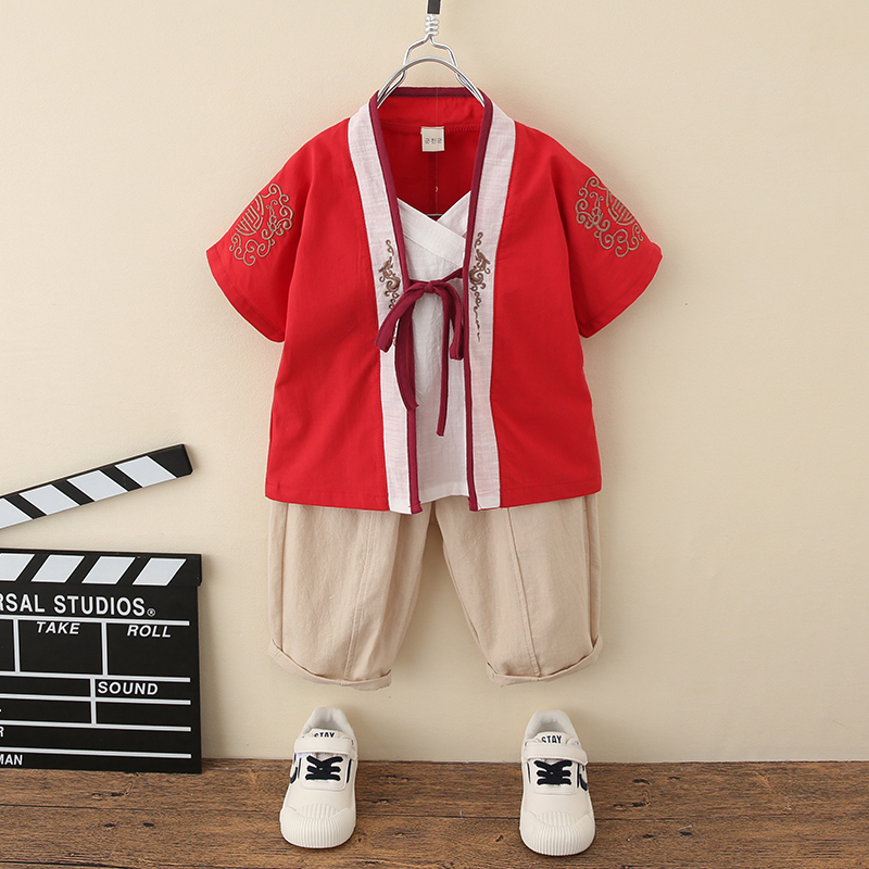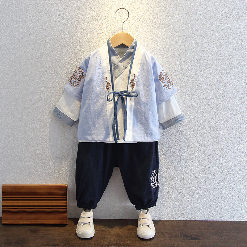 Hanfu boy's one-year-old dress boy baby summer dress Chinese style ancient costume Mid-autumn children's Tang suit cotton and linen suit thin section