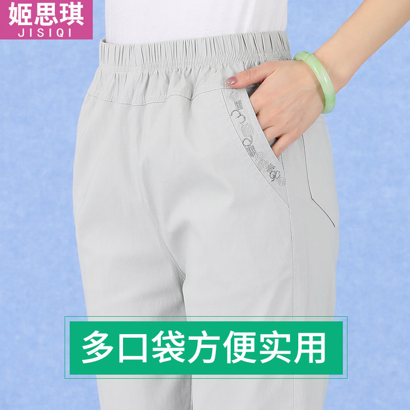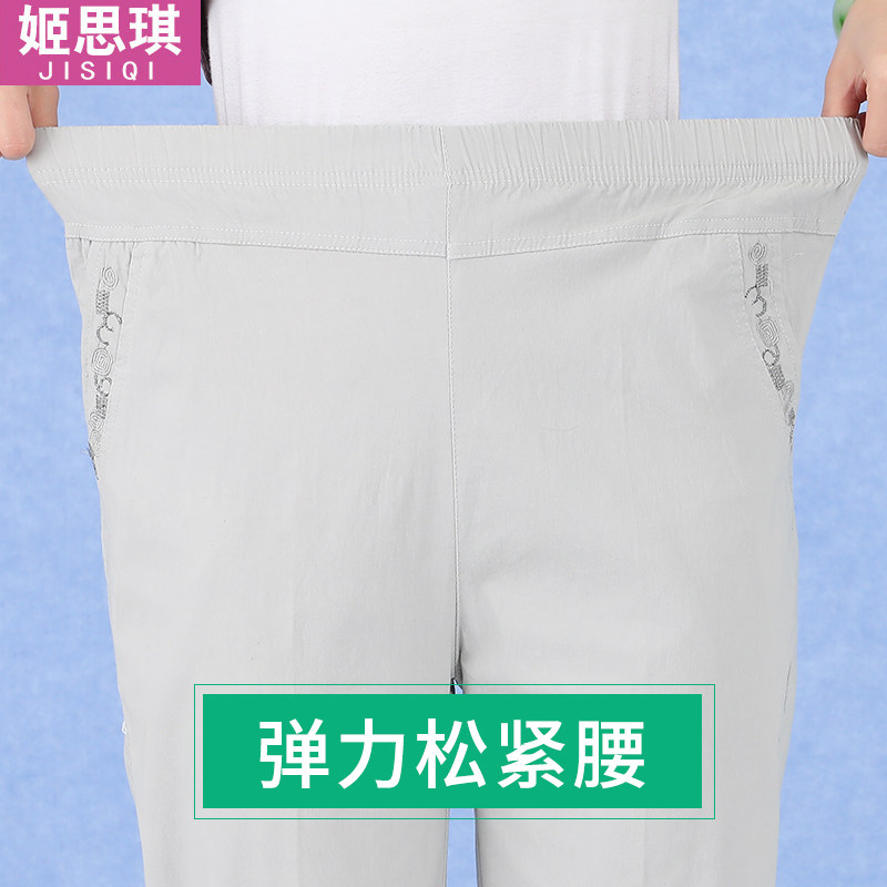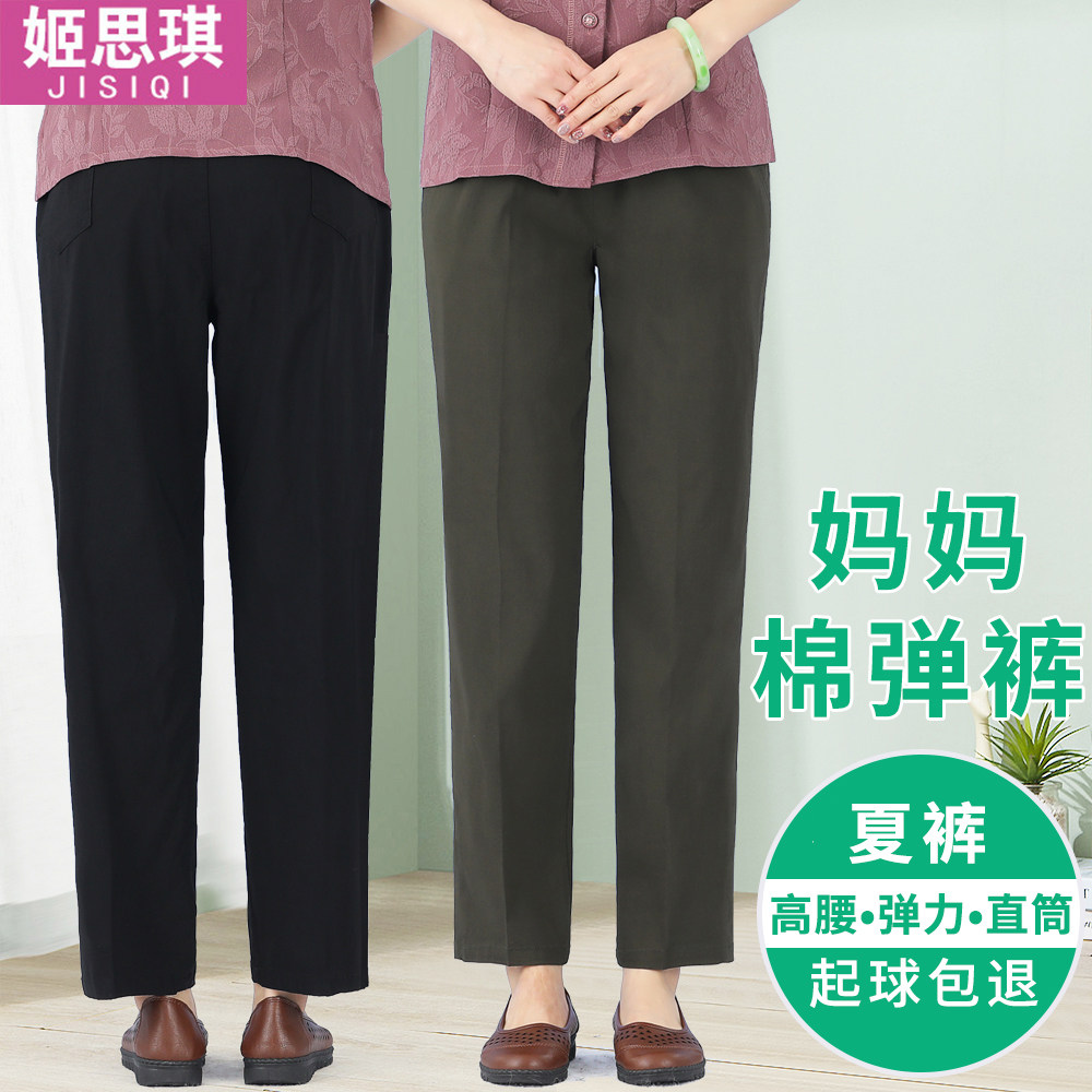Summer mom pants thin high waist loose straight stretch pants for the elderly granny pants elastic waist women's pants