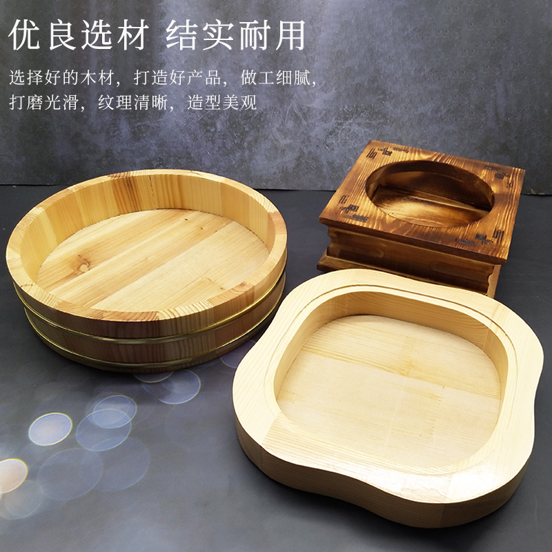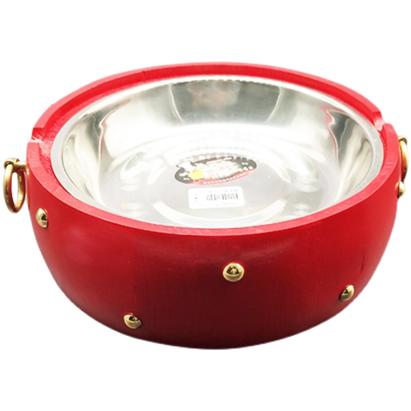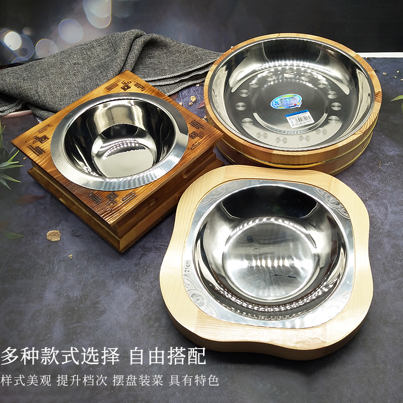 Solid Wood Hotel Featured Wood Round Red Gong Drum Care Pan Soup Rind for fish stock Hearts Pan Red Drum Cutlery