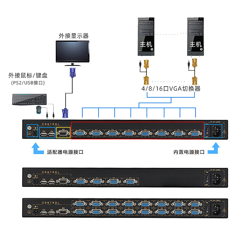 Renan KVM17-inch video display 4 8 16VGA ports 1U rack USB keyboard multicomputer switch