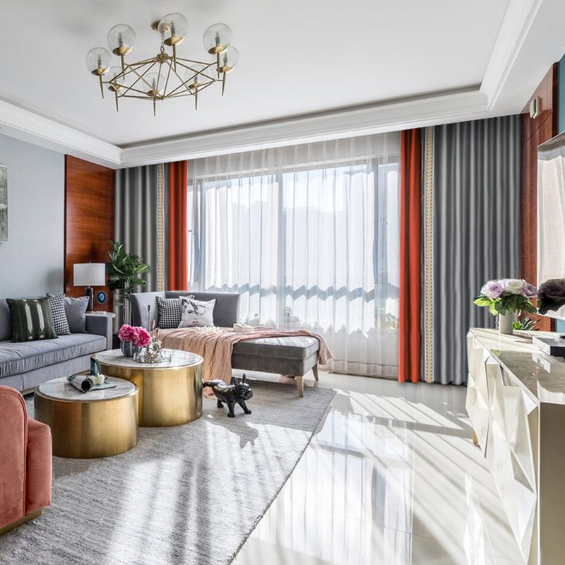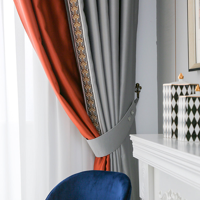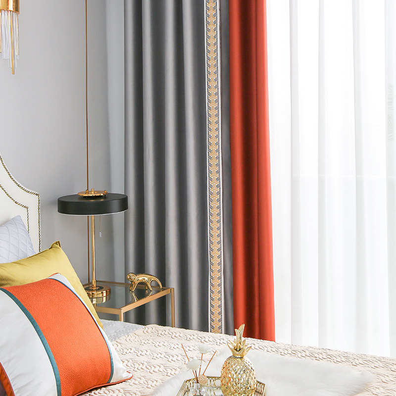 2022 new Nordic hit-color curtains light and luxurious bedroom rear modern minimalist grey orange splicing shading cloth living room upscale