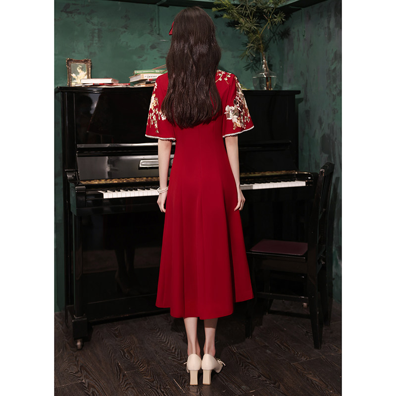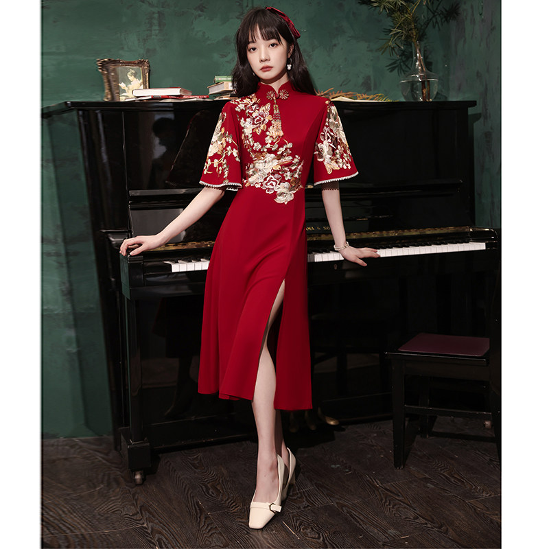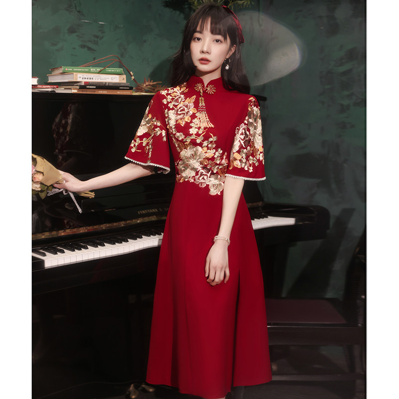 Qipao toast to the bride 2022 new wedding engagement gown dress back door Chinese show and wine red