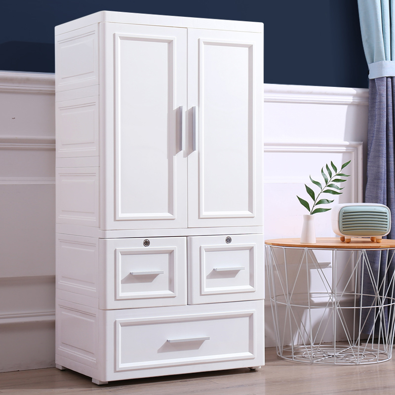 Thickened Baby Wardrobe Modern Minima Double Door Containing Cabinet Drawer Baby Boy Hanging Closet Plastic Five Bucket Cabinet