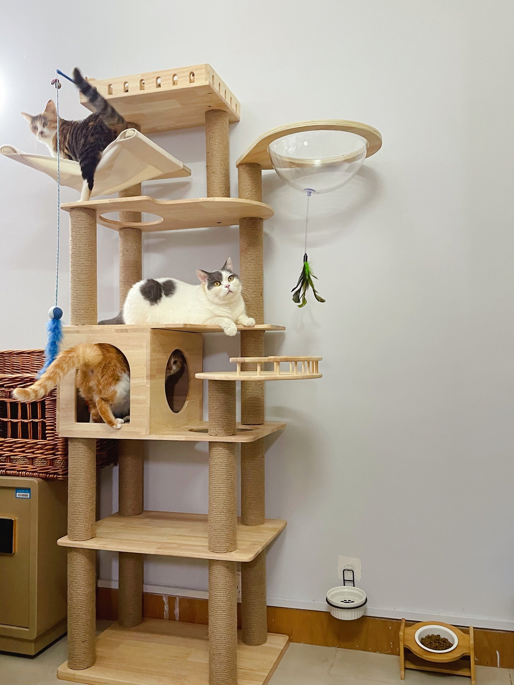 Water Star Meow to remember eco-friendly solid wood Large cat climbing Cat Rack Kitty Supplies Cat catwalk Cat Tree Integrated Cat Catch-Taobao