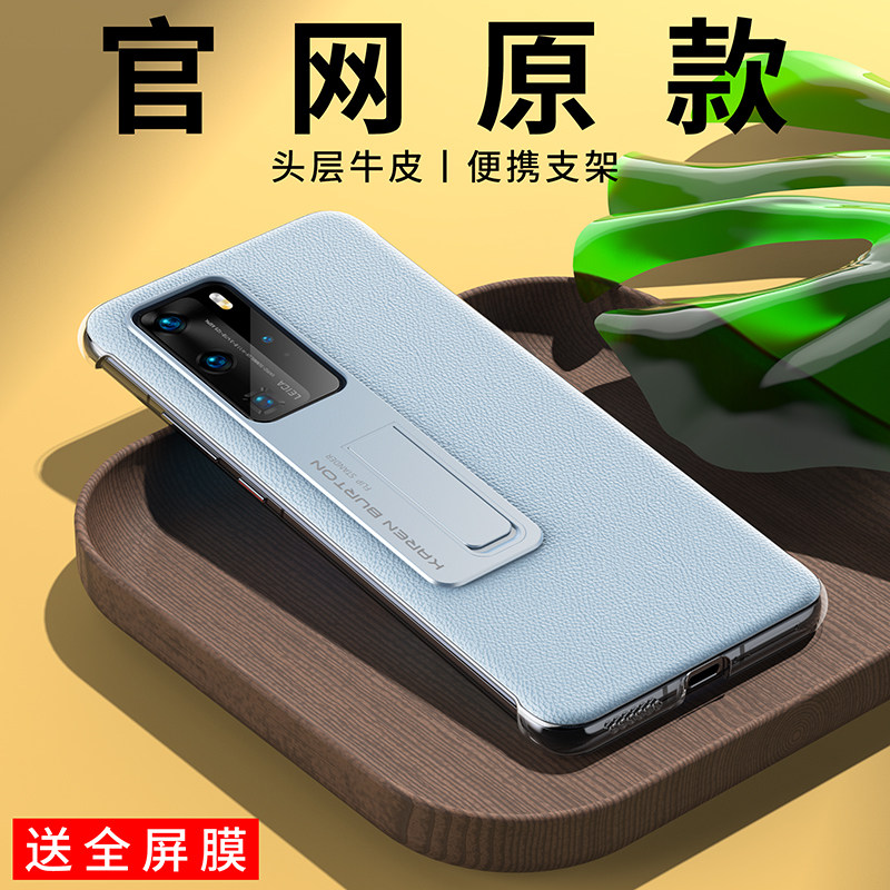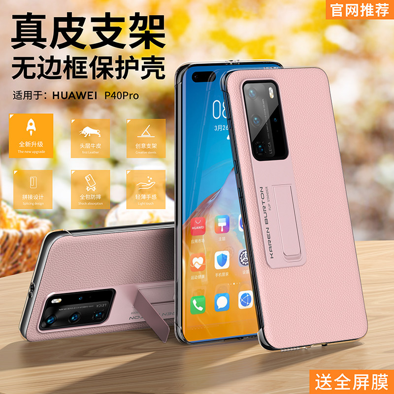 Suitable for Huawei p40pro mobile phone protection shell real belt bracket Bull Leather Without Border p40p Protection protective wrist Half-coated mesh Red official Tongan ultra thin accessories p4opor upscale housing Chauffling