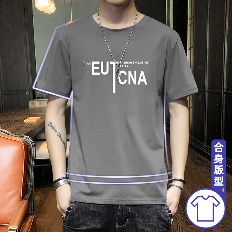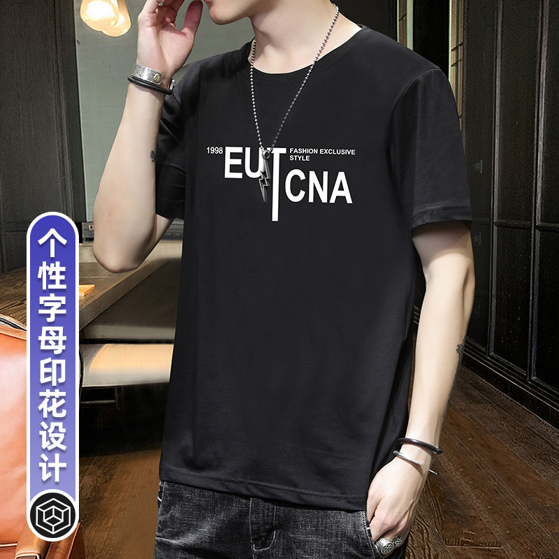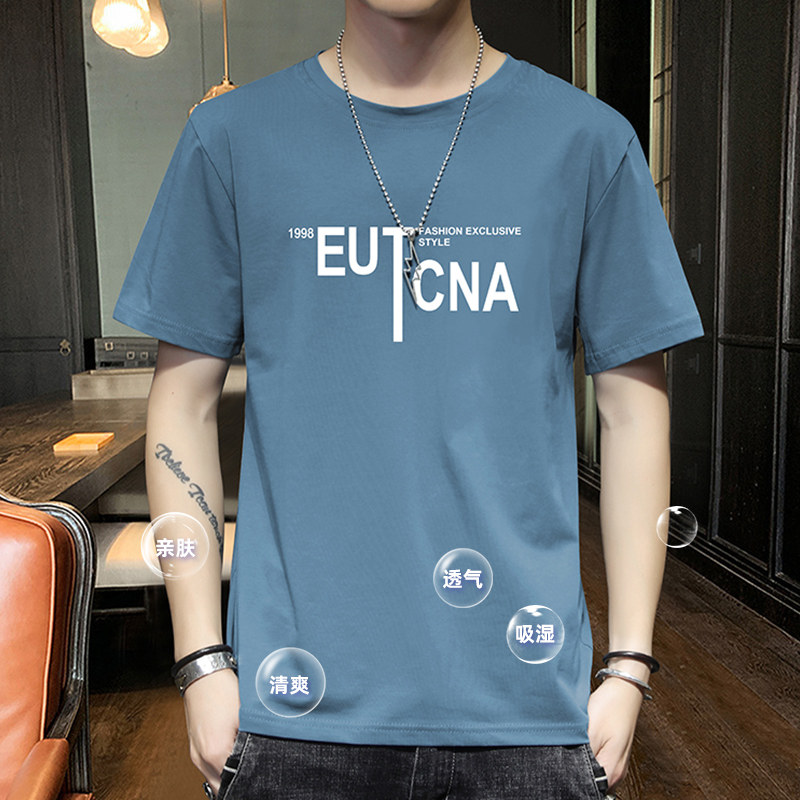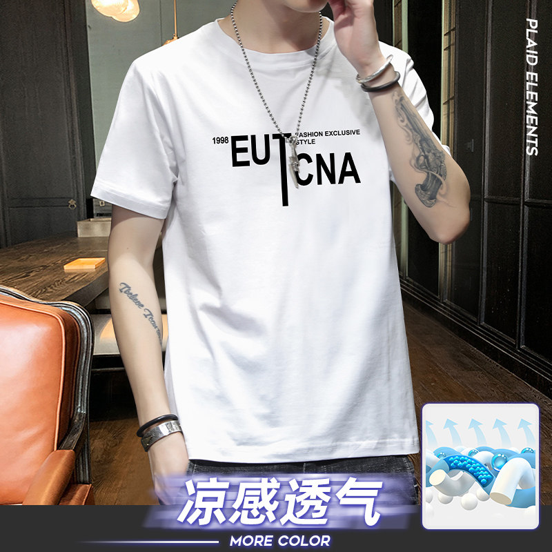 Short sleeve T-shirt male summer thin style handsome pure cotton round collar 100 lap blouses 2021 new fashion casual men's clothing