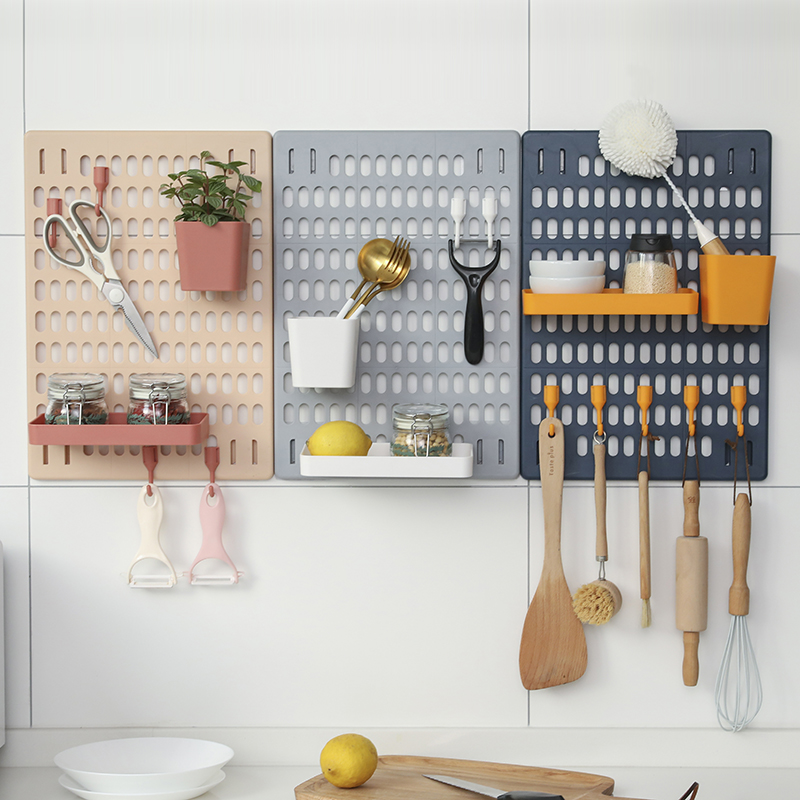 Non-perforated dongle plate containing wall Kitchen Shelf Wall-mounted Wall Door Rear Multifunctional skillet Scoop Seasoning Jar Rack