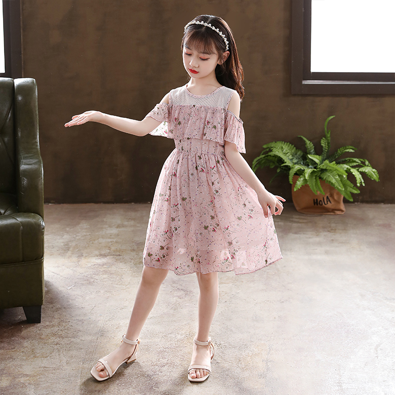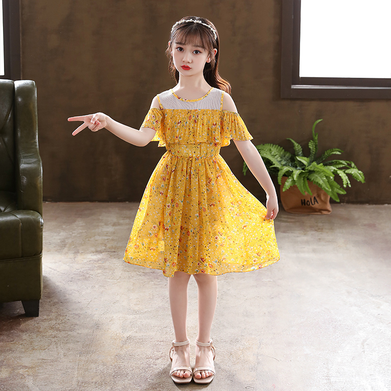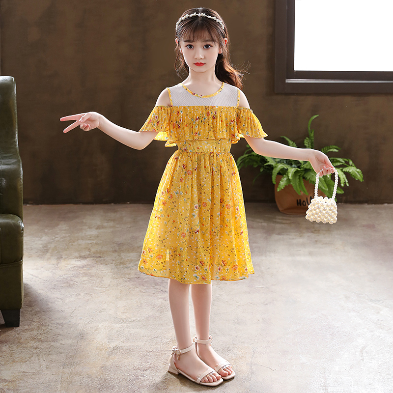 Children's clothing Girls ' dresses Summer Korean series one shoulder floral princess dress Chiffon foreign style net red children's skirt summer
