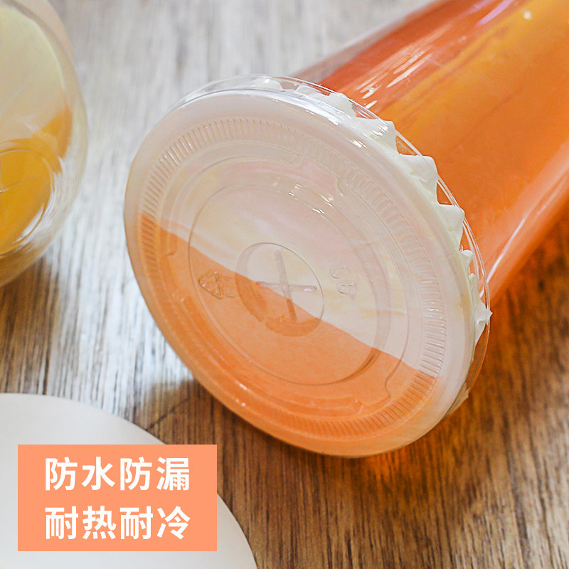 90 caliber plastic milk tea juice delivery packaging cup with ball cover flat cover open cover leak-proof paper thick straw