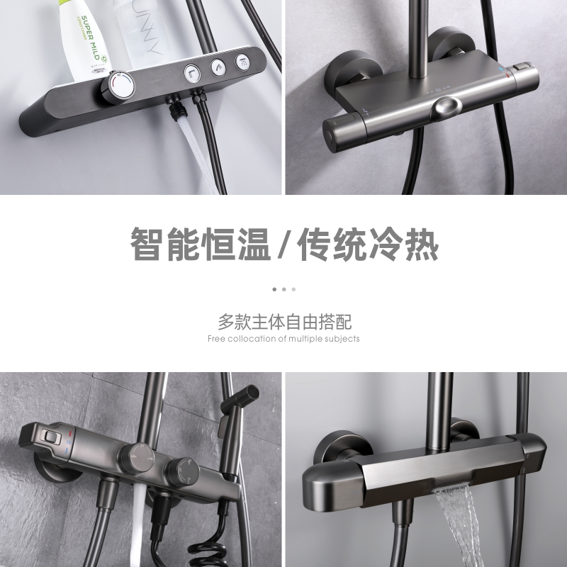 CNSIMPSONNS Gun Grey Star Nightshower Suit Thermostatic Shower Home Bathroom Bathed Starry Sky Full Copper Bathroom