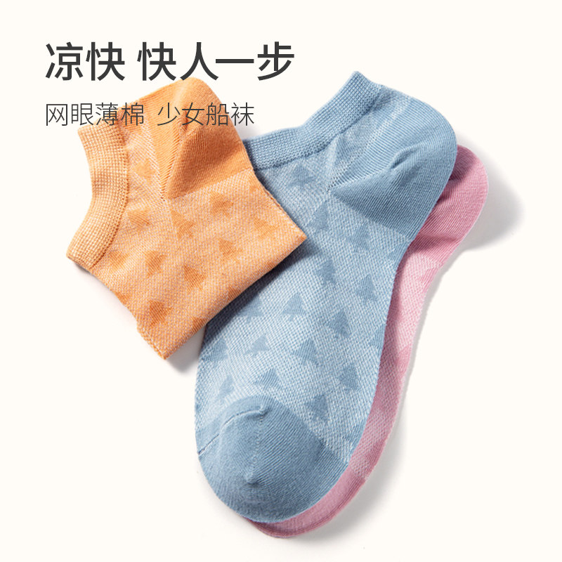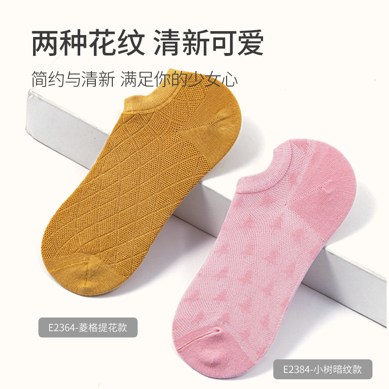 Socks women's invisible socks spring and summer thin socks non-slip can not fall off the heel shallow mesh breathable cotton cute short socks embroidery