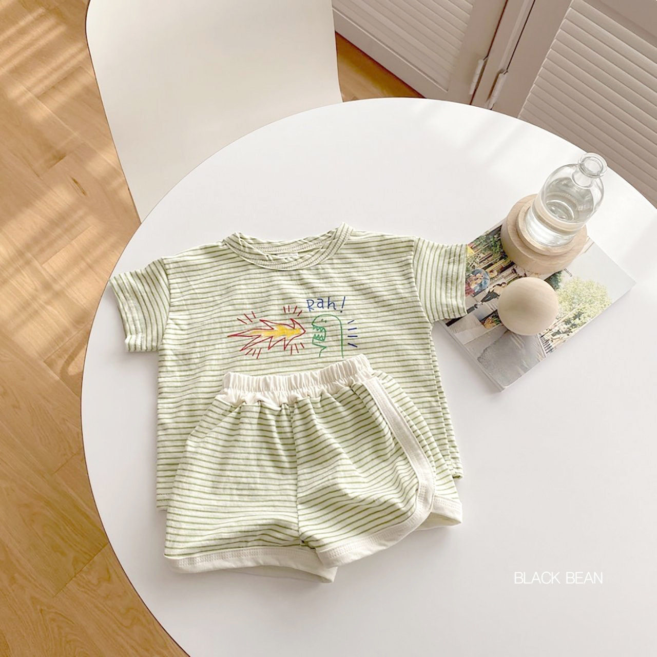 Male And Female Babies Cartoon Super Cute Dinosaur Striped T-shirt Suit Infant Short Sleeve Blouse Shorts Summer Children